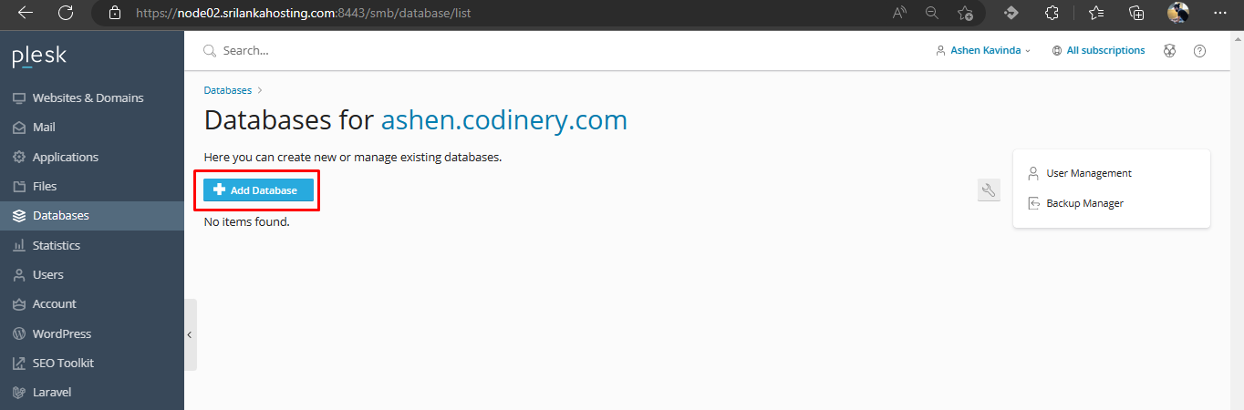 Once the database has been created, you can use it to store and retrieve data for your website or web application. You can also use the Plesk UI to manage the database, such as by adding and removing users, importing and exporting data, and performing backups.