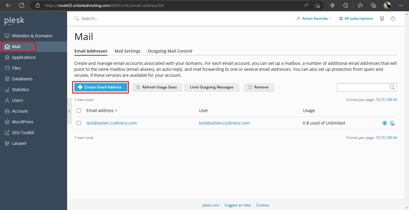 - Go to Mail > Create Email Address.