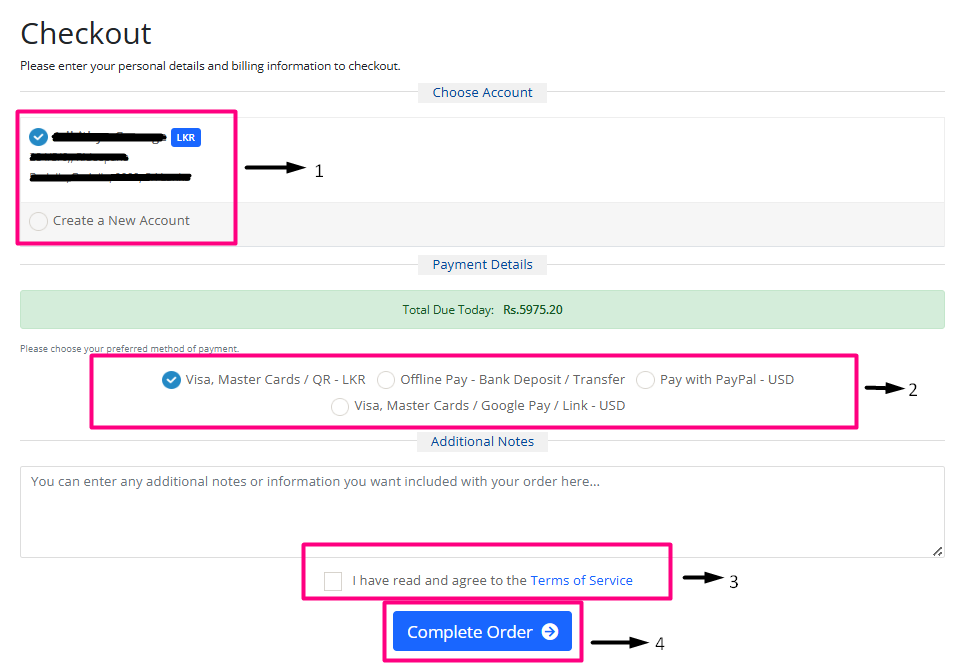 - Read and tick the checkbox I have read and agree to the Terms of service