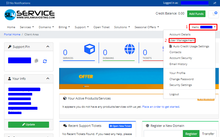 - Go to the User Management Page link or In your Client Account, Click on the Dropdown Menu