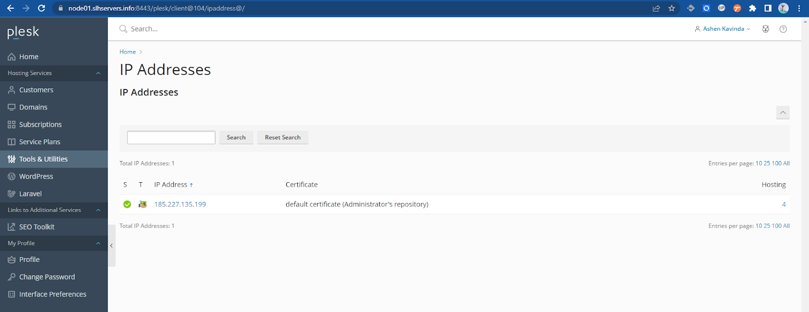 - Go to Tools & Utilities -> IP Addresses, and click the IP address you need.