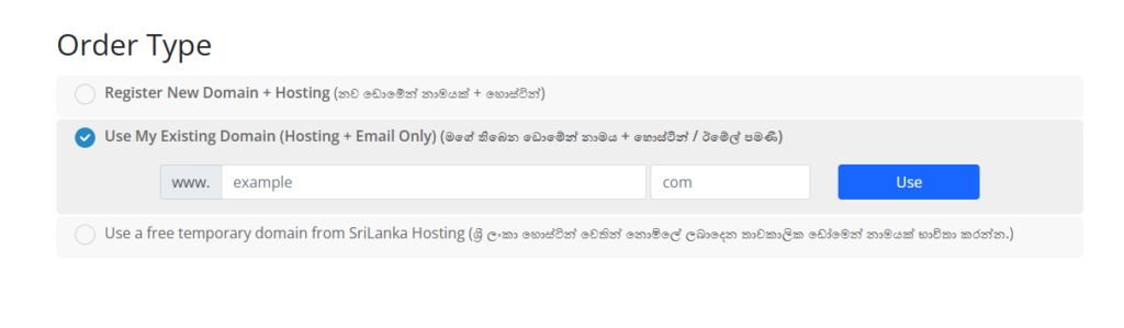 - If you want to buy web hosting with a new domain, please choose the 1st option.