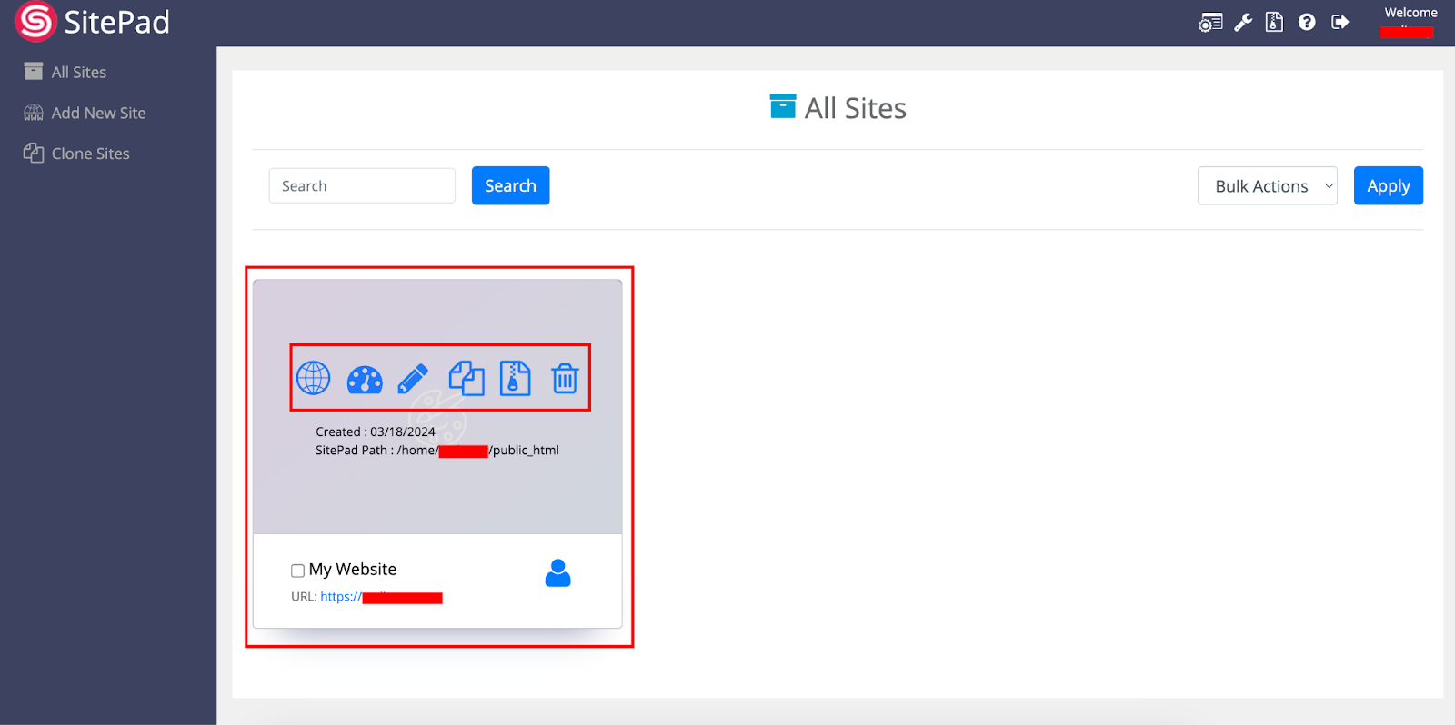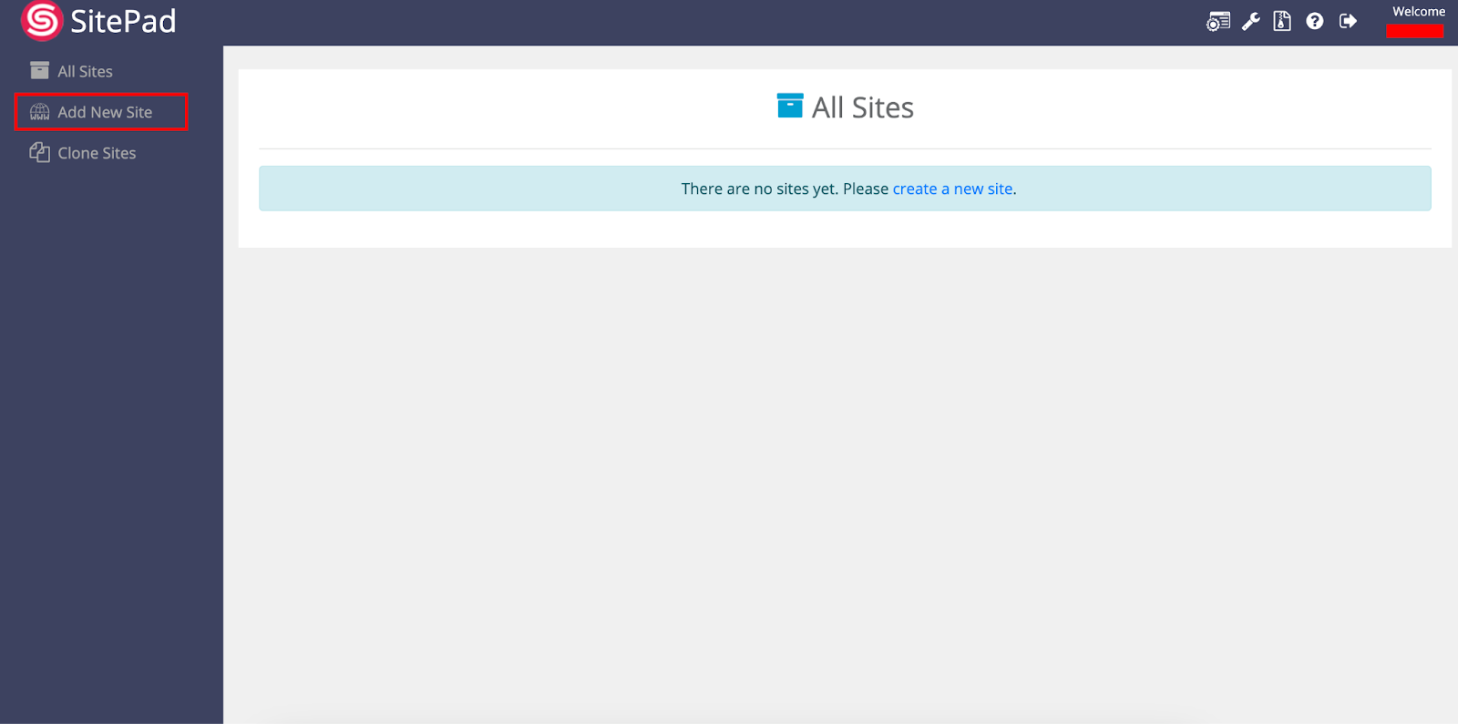 Step 03: Select Add New site from the loaded screen