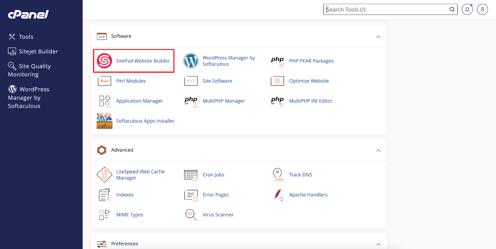Step 02: Locate Sitepad Website Builder in Software section