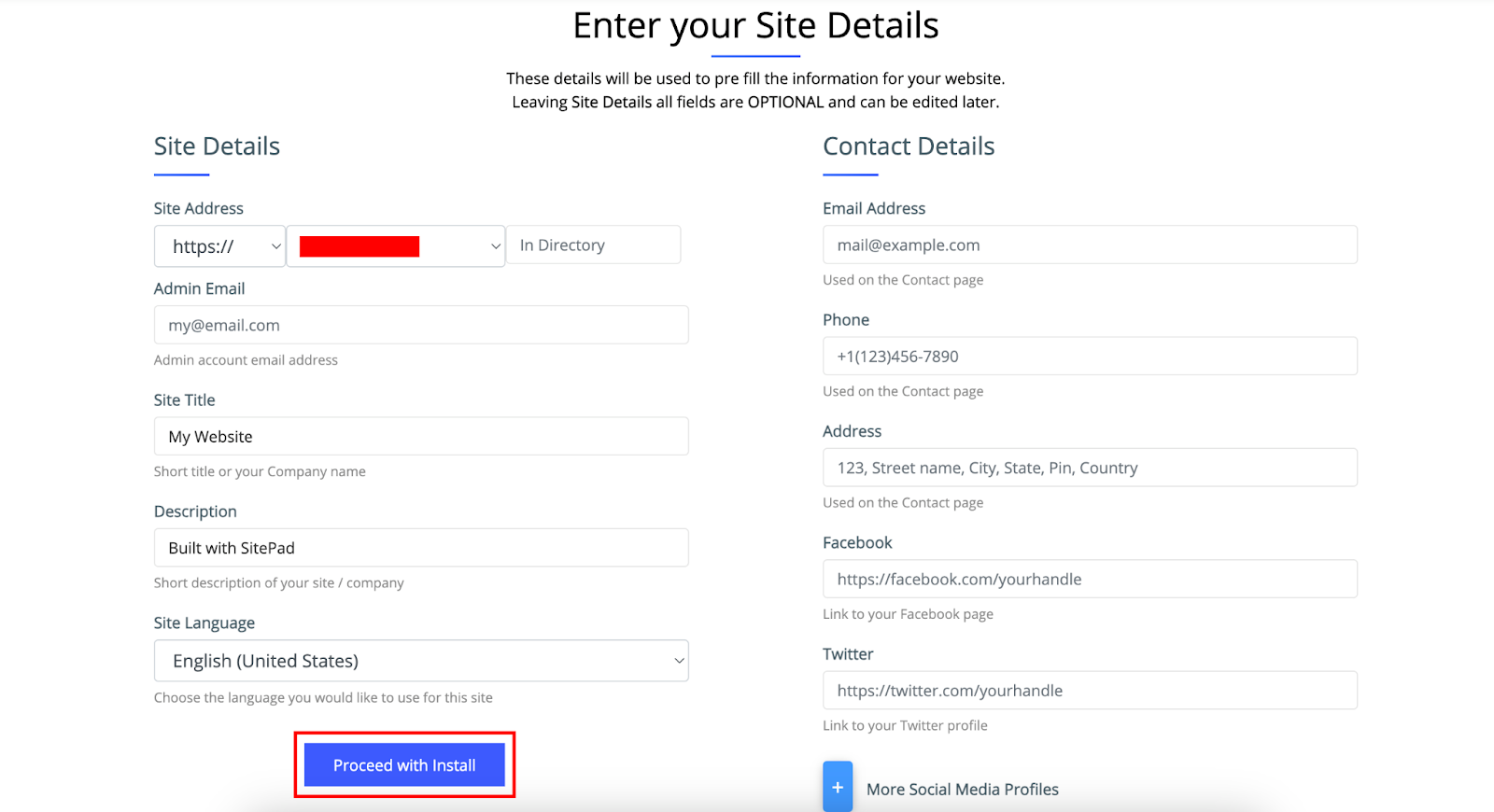 Step 06: Fill your site details