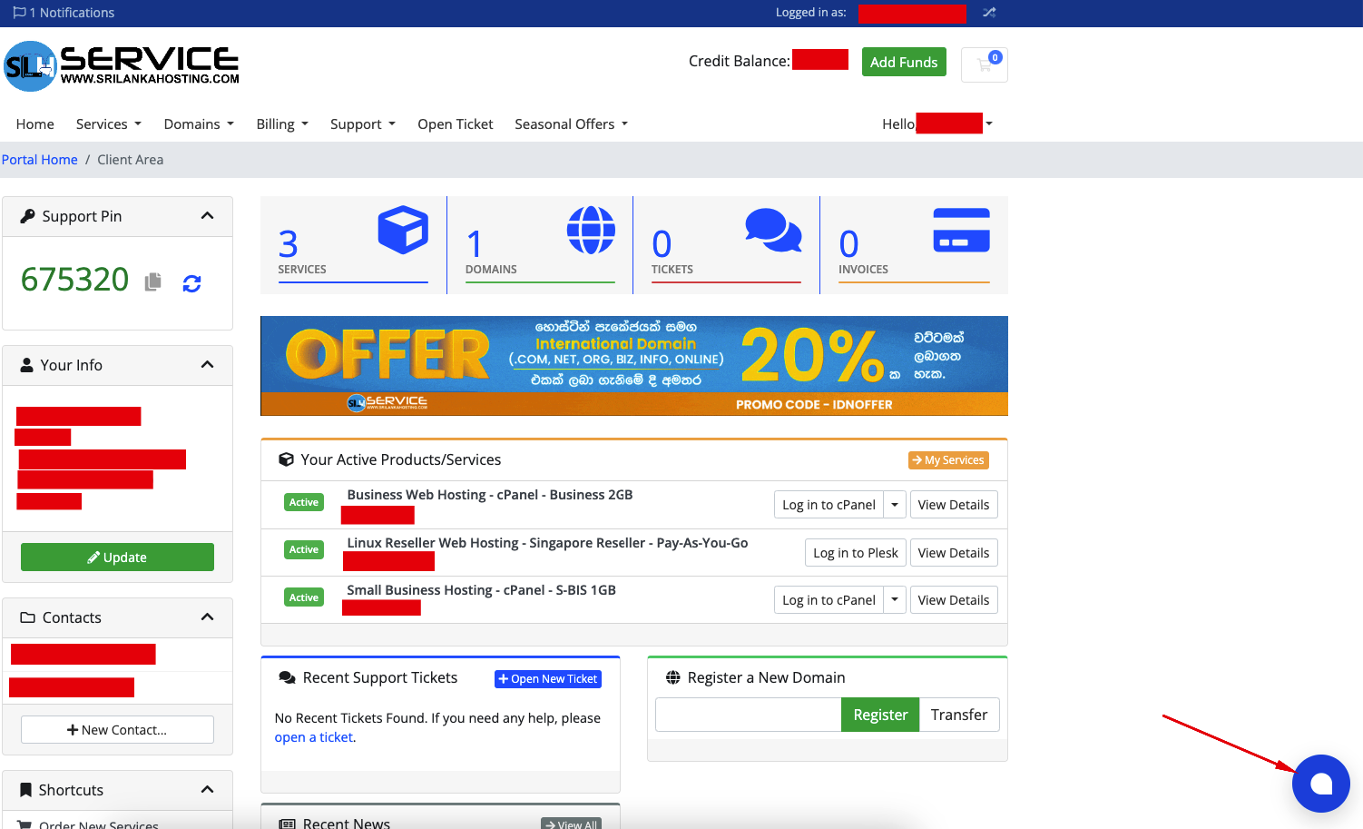 Note that support pin will change randomly for every user. It is required to log in to your client area to get your updated support pin.